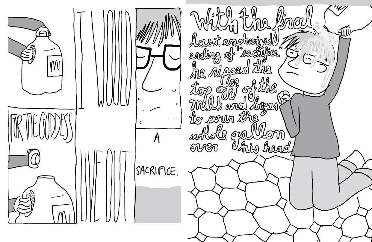 The mere mention of "middle school" sets fear into the hearts anyone who has endured that median of meager education. Almost everyone has a story of an awkward occurrence from those bumbling adolescent days. "Milk-Boy" explores a single story of such an event, with overarching themes of judgement and bullying. You'll laugh. You'll cry. You may become lactose intolerant. This project was completed as my senior project at York College of Pennsylvania and was thus featured in the Graphic Design Spring '14 Exhibition. It was selected for 1st place.