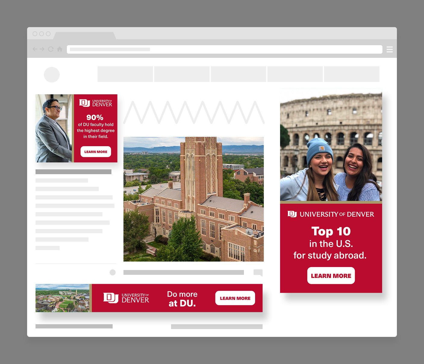 At the University of Denver, I build on-brand, multi-platform design that balances clarity, character, and accessibility. My practice blends art direction, production, and custom illustration to translate messy inputs into coherent visuals for diverse campus audiences. This portfolio entry is a living piece and will grow as new initiatives roll out.
